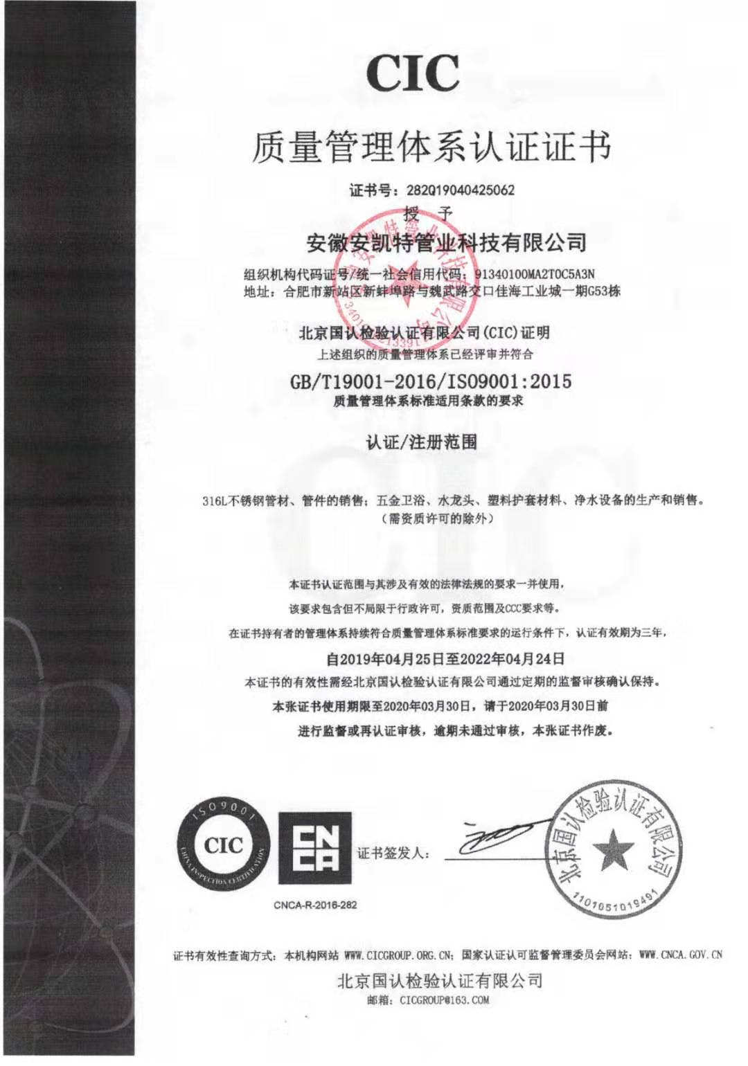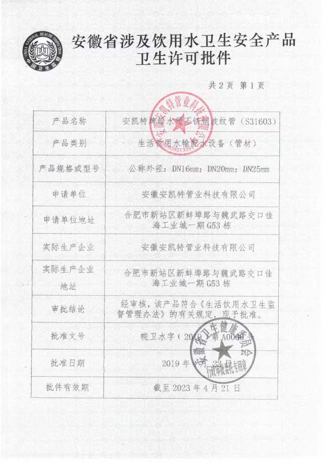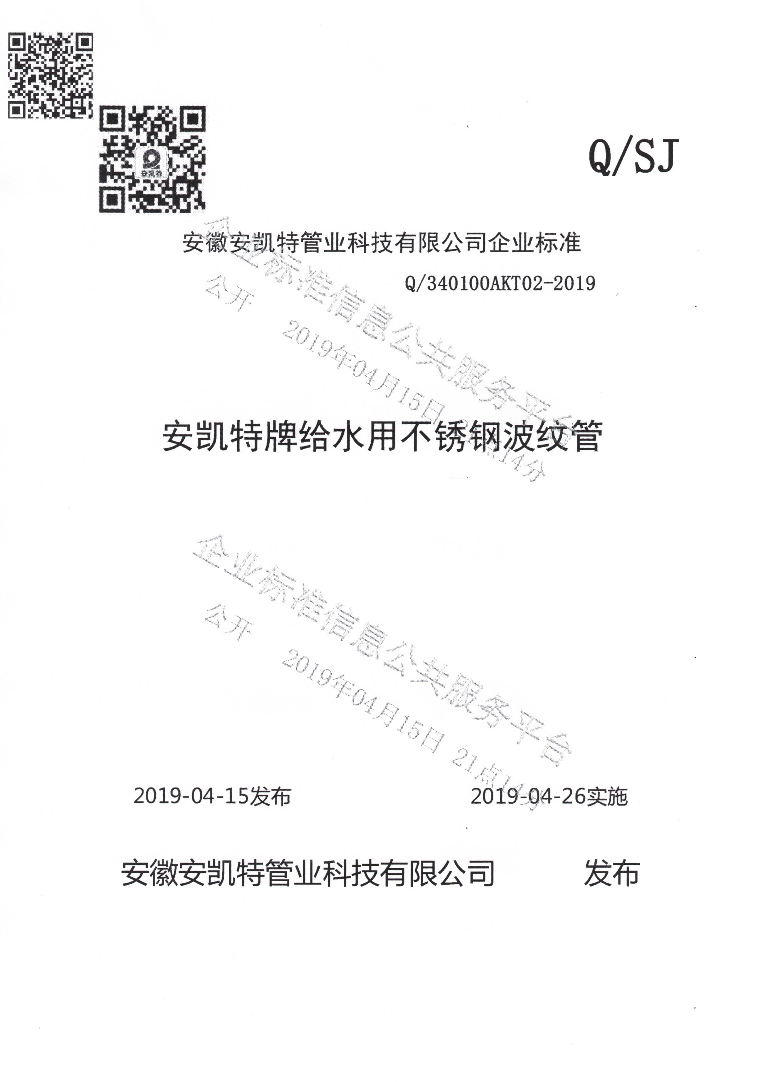 安凱特制定發(fā)布了《不銹鋼波紋冷熱水管企業(yè)標(biāo)準(zhǔn)》規(guī)范產(chǎn)品質(zhì)量引導(dǎo)行業(yè)健康發(fā)展.