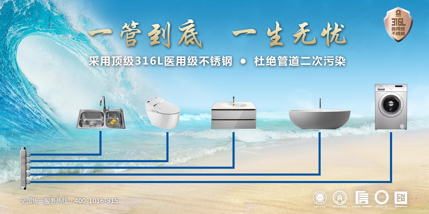 安徽安凱特管業科技有限公司秉承“歐洲工藝、高端制造”的產品研發理念,采用高檔316L(可植入人體的醫用級)不銹鋼原材料,專注于高端不銹鋼家裝波紋管道系統的推廣與應用,在別墅、酒店、住宅、醫院等領域及直飲水配套系統中,安凱特產品均達到國際先進水平,各項技術指標均高于同類產品,為安凱特飲水管道系統在國內的安全應用和健康普及做出了巨大貢獻。