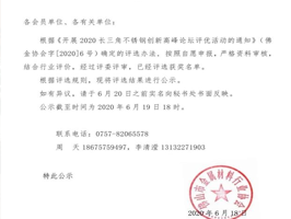 各會員單位、各有關(guān)單位: 根據(jù)《開展2020長三角不銹鋼創(chuàng)新高峰論壇評優(yōu)活動的通知》(佛金協(xié)會字[2020]6...